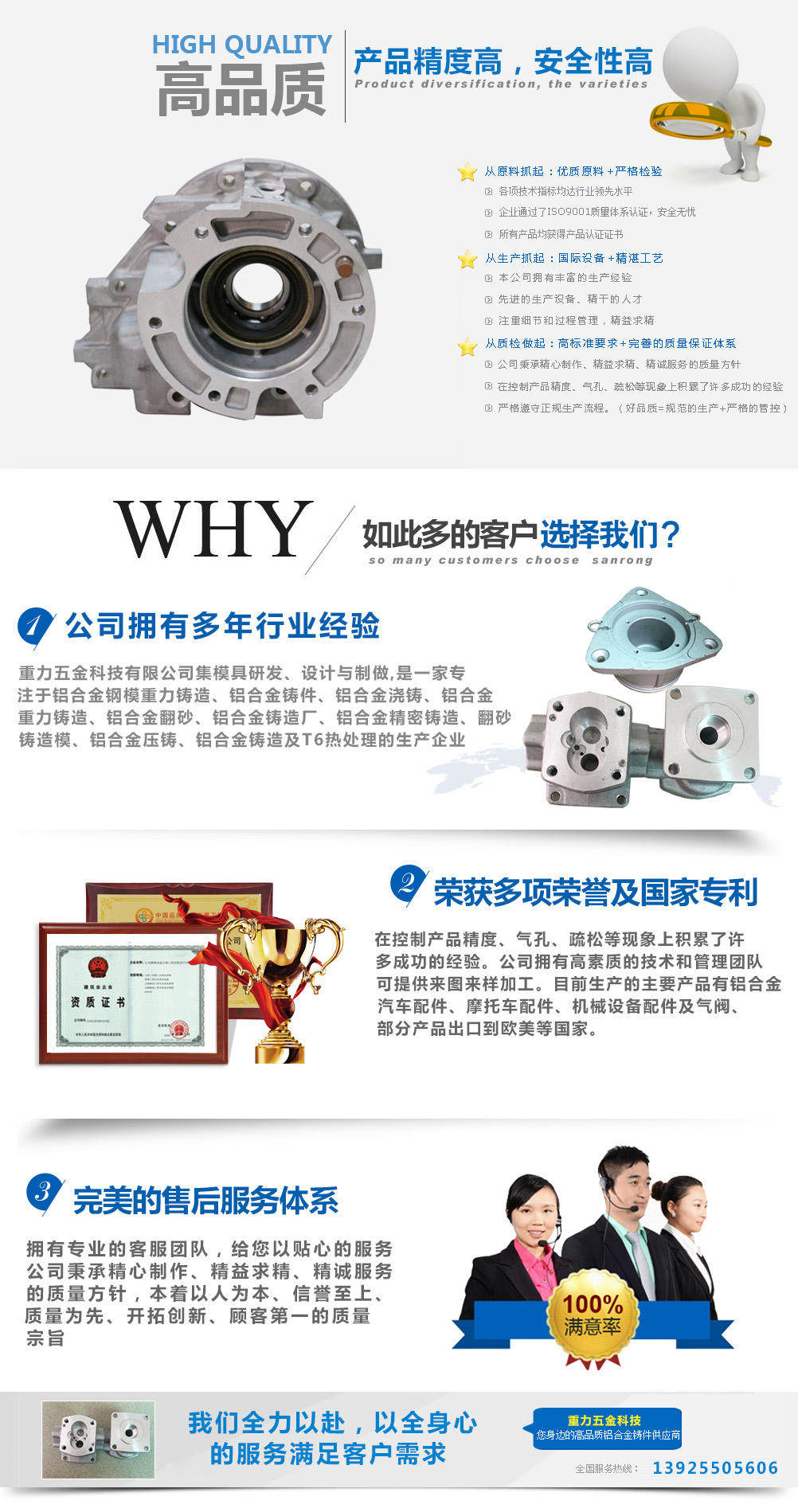 東莞市重力五金科技有限公司集模具研發(fā)、設(shè)計與制做,是一家專注于鋁合金鋼模重力鑄造、鋁合金鑄件、鋁合金澆鑄、鋁合金重力鑄造、鋁合金翻砂、鋁合金鑄造廠、鋁合金精密鑄造、翻砂鑄造模、鋁合金壓鑄、鋁合金鑄造及T6熱處理的生產(chǎn)企業(yè),配有柴油熔化爐、電阻保溫爐、生物顆粒爐,傾斜式澆鑄機、臥式澆鑄機、熱處理井式電阻爐、電阻時效爐、砂芯殼芯機、拋丸機等鑄造和熱處理設(shè)備,....